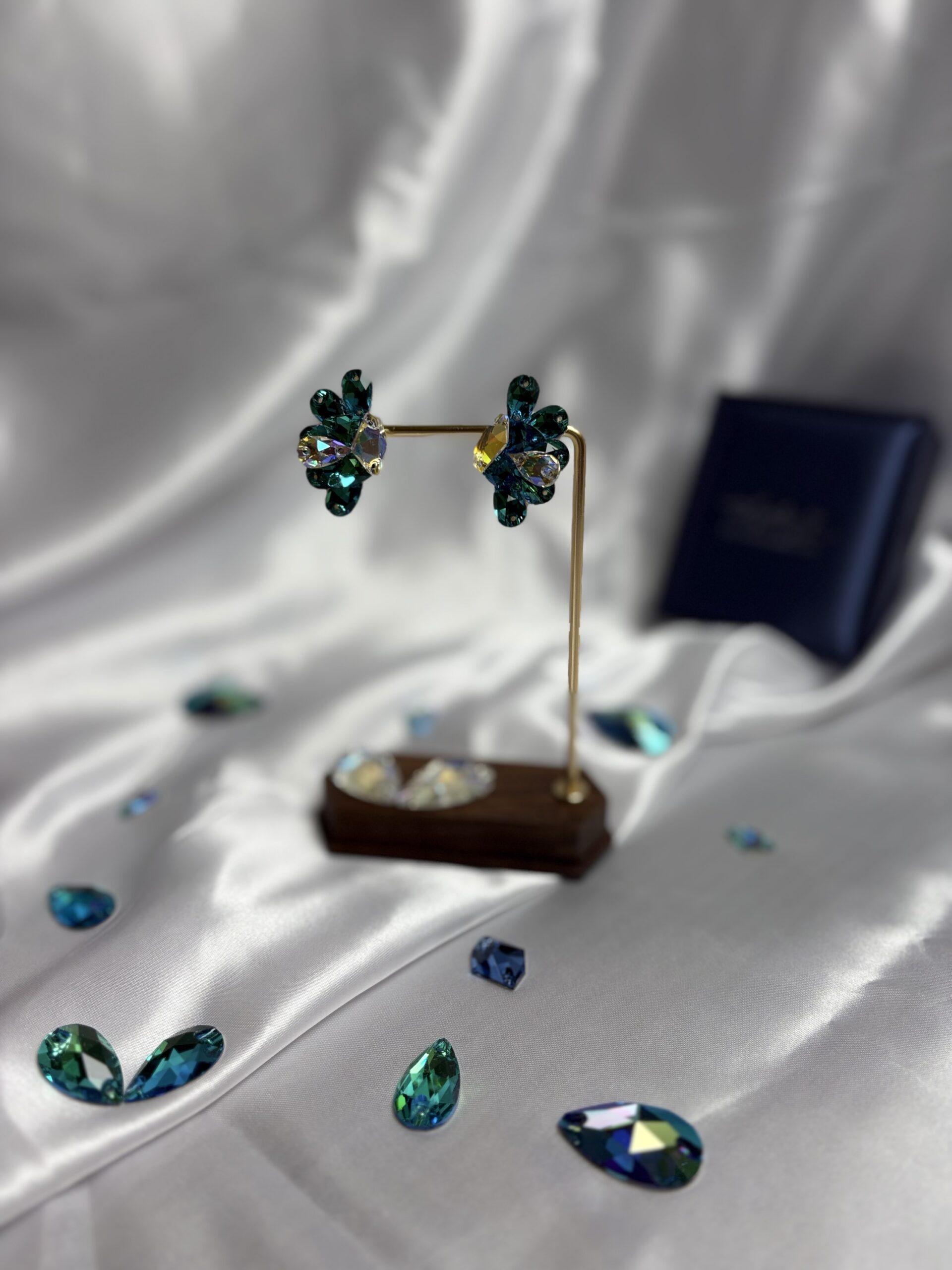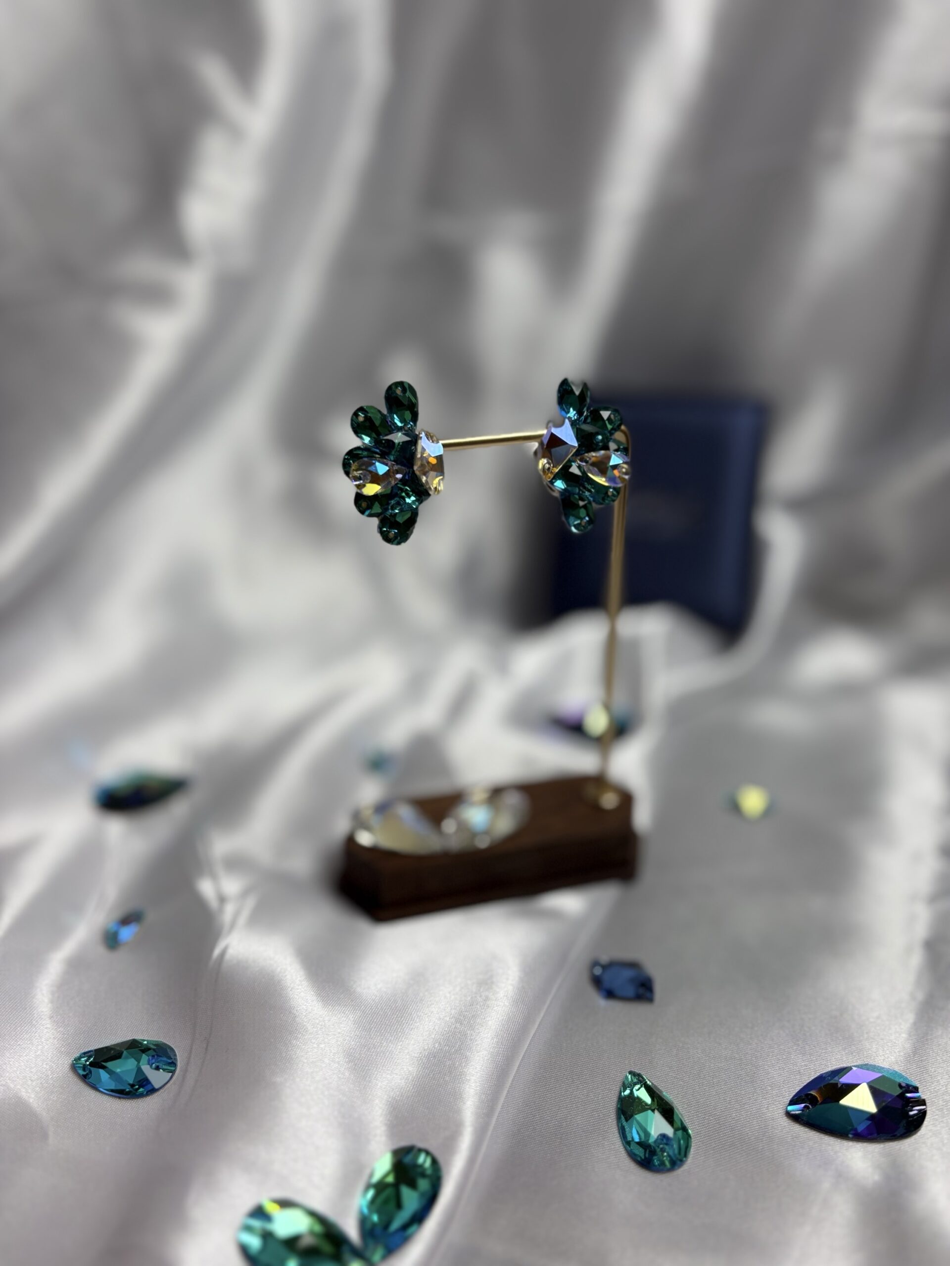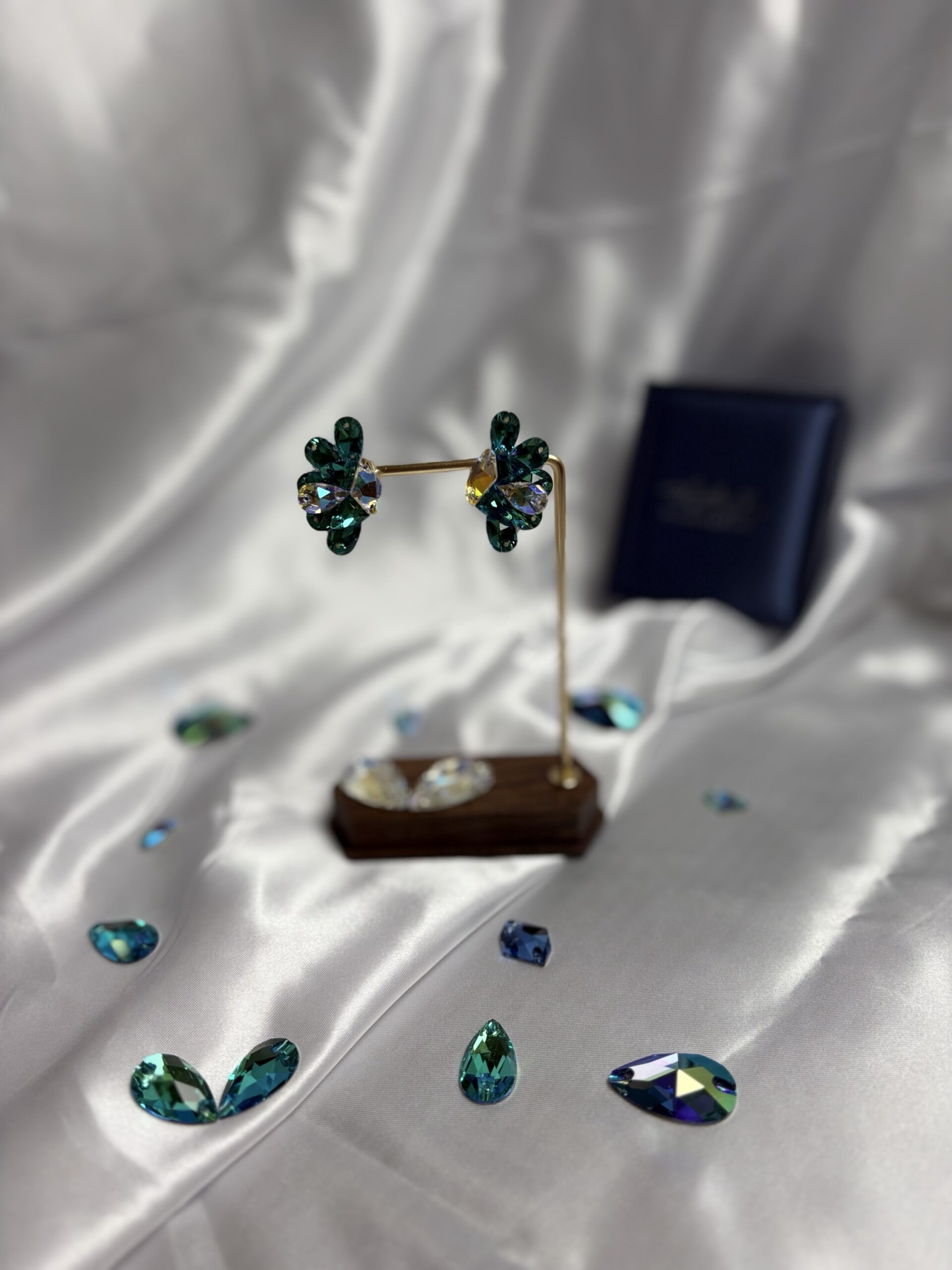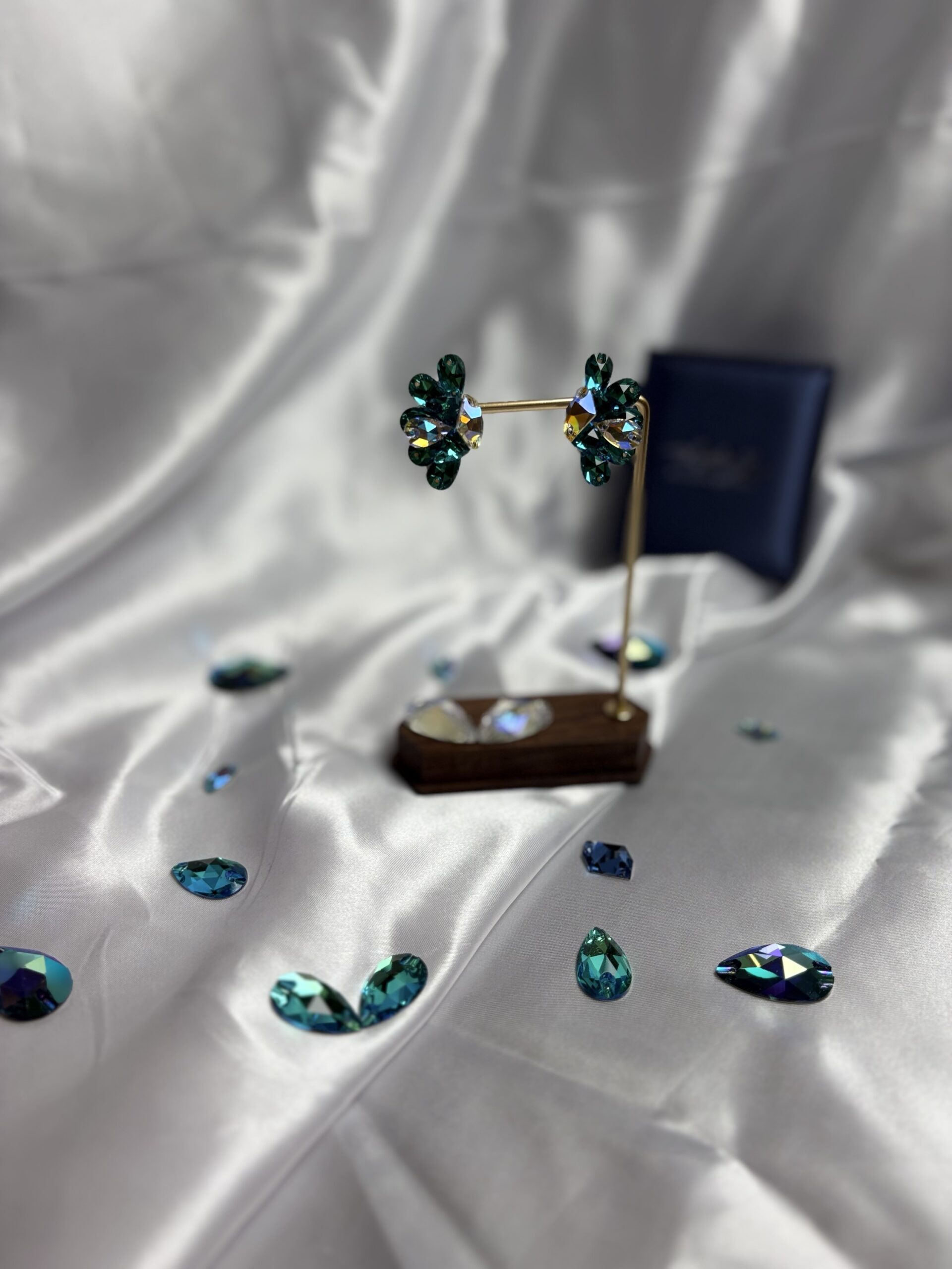 エメラルドグリーンのペアシェイプを放射状に配置。